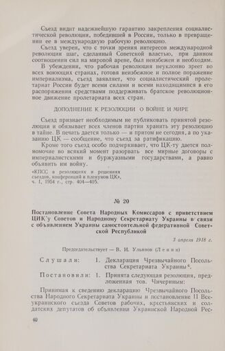 Главная Октябрьская революция и установление советской власти в республиках... Великая Октябрьская социалистическая революция на Украине Великая Октябрьская социалистическая революция на Украине. Февраль ... Документы Постановление Совета Народных Комиссаров с приветствием ЦИКу Совето...