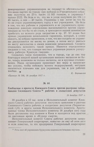 Сообщение о протесте Киевского Совета против разгрома гайдамаками Сосницкого Совета рабочих и солдатских депутатов. 18 декабря 1917 г.