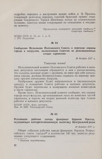 Сообщение Исполкома Полтавского Совета о переходе охраны города к патрулям, назначенным Советом из революционных солдат гарнизона. 28 декабря 1917 г.
