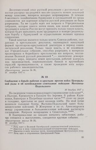 Сообщение о борьбе рабочих и крестьян против войск Центральной рады и об освобождении советскими войсками Могилева-Подольского. 30 декабря 1917 г. // «Пролетарская мысль», № 25, 30 декабря 1917 г.
