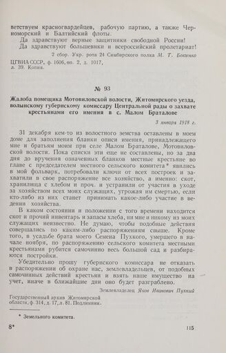 Главная Октябрьская революция и установление советской власти в республиках... Великая Октябрьская социалистическая революция на Украине Великая Октябрьская социалистическая революция на Украине. Февраль ... Документы Жалоба помещика Мотовиловской волости, Житомирского уезда, волынско...