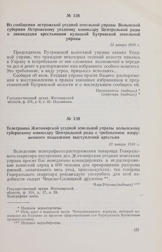 Из сообщения острожской уездной земельной управы Волынской губернии Острожскому уездному комиссару Центральной рады о ликвидации крестьянами кулацкой Бугринской земельной управы. 13 января 1918 г.