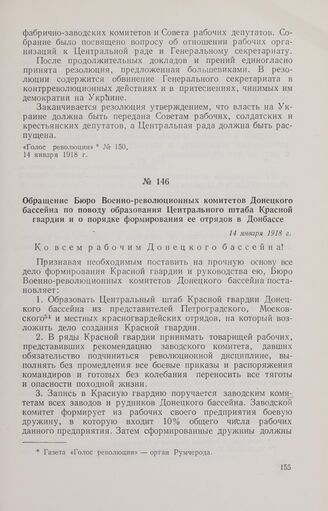 Обращение Бюро Военно-революционных комитетов Донецкого бассейна по поводу образования Центрального штаба Красной гвардии и о порядке формирования ее отрядов в Донбассе. 14 января 1918 г.
