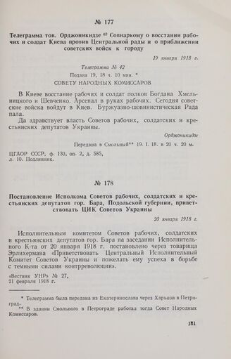 Главная Октябрьская революция и установление советской власти в республиках... Великая Октябрьская социалистическая революция на Украине Великая Октябрьская социалистическая революция на Украине. Февраль ... Документы Телеграмма тов. Орджоникидзе Совнаркому о восстании рабочих и солда...