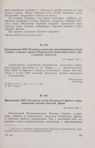Главная Октябрьская революция и установление советской власти в республиках... Великая Октябрьская социалистическая революция на Украине Великая Октябрьская социалистическая революция на Украине. Февраль ... Документы Распоряжение ЦИК Румчерода комиссару артиллерийского склада в Одесс...