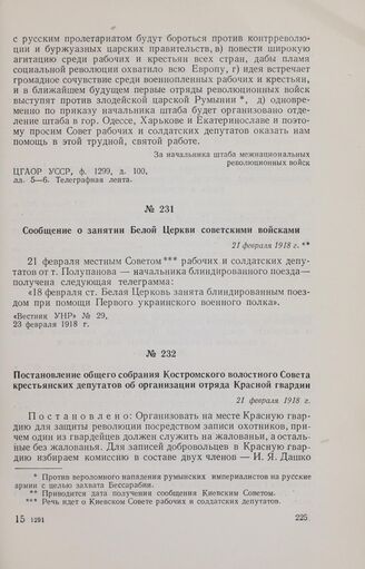 Сообщение о занятии Белой Церкви советскими войсками. 21 февраля 1918 г.