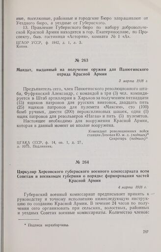 Мандат, выданный на получение оружия для Панютинского отряда Красной Армии. 3 марта 1918 г.
