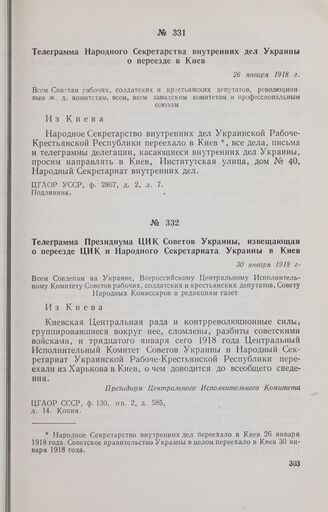 Главная Октябрьская революция и установление советской власти в республиках... Великая Октябрьская социалистическая революция на Украине Великая Октябрьская социалистическая революция на Украине. Февраль ... Документы Телеграмма Народного Секретарства внутренних дел Украины о переезде...
