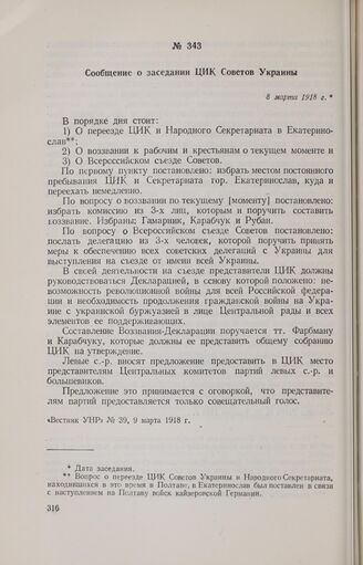 Главная Октябрьская революция и установление советской власти в республиках... Великая Октябрьская социалистическая революция на Украине Великая Октябрьская социалистическая революция на Украине. Февраль ... Документы Сообщение о заседании ЦИК Советов Украины. 8 марта 1918 г.