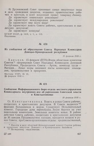Главная Октябрьская революция и установление советской власти в республиках... Великая Октябрьская социалистическая революция на Украине Великая Октябрьская социалистическая революция на Украине. Февраль ... Документы Из сообщения об образовании Совета Народных Комиссаров Донецко-Крив...