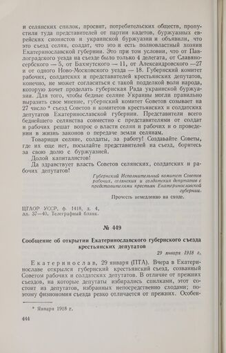 Главная Октябрьская революция и установление советской власти в республиках... Великая Октябрьская социалистическая революция на Украине Великая Октябрьская социалистическая революция на Украине. Февраль ... Документы Сообщение об открытии Екатеринославского губернского съезда крестья...