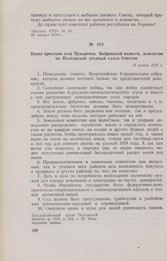 Главная Октябрьская революция и установление советской власти в республиках... Великая Октябрьская социалистическая революция на Украине Великая Октябрьская социалистическая революция на Украине. Февраль ... Документы Наказ крестьян села Цукаревки, Байракской волости, делегатам на Пол...