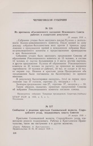 Из протокола объединенного заседания Нежинского Совета рабочих и солдатских депутатов. 21 января 1918 г.