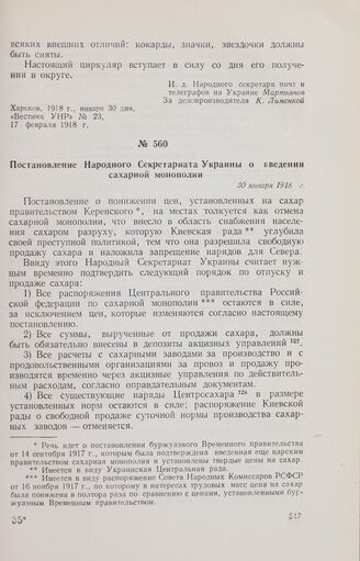 Главная Октябрьская революция и установление советской власти в республиках... Великая Октябрьская социалистическая революция на Украине Великая Октябрьская социалистическая революция на Украине. Февраль ... Документы Постановление Народного Секретариата Украины о введении сахарной мо...