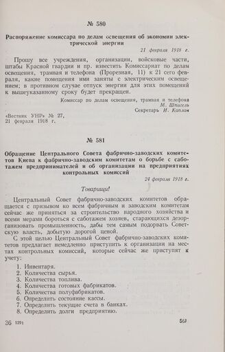Главная Октябрьская революция и установление советской власти в республиках... Великая Октябрьская социалистическая революция на Украине Великая Октябрьская социалистическая революция на Украине. Февраль ... Документы Распоряжение комиссара по делам освещения об экономии электрической...