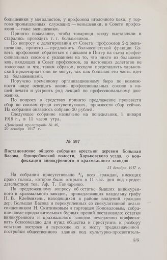 Постановление общего собрания крестьян деревни Большая Басова, Одноробовской волости, Харьковского уезда, о конфискации винокуренного и крахмального заводов. 31 декабря 1917 г.