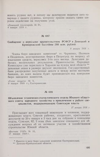 Главная Октябрьская революция и установление советской власти в республиках... Великая Октябрьская социалистическая революция на Украине Великая Октябрьская социалистическая революция на Украине. Февраль ... Документы Сообщение о пересылке правительством РСФСР в Донецкий и Криворожски...