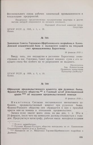 Обращение продовольственного комитета при рудниках бывш. Франко-Русского общества в Главный штаб революционной армии об оказании продовольственной помощи. 19 февраля 1918 г.