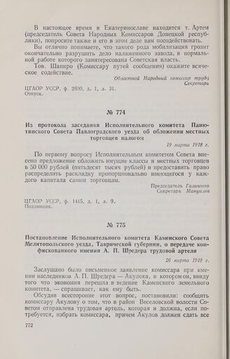 Главная Октябрьская революция и установление советской власти в республиках... Великая Октябрьская социалистическая революция на Украине Великая Октябрьская социалистическая революция на Украине. Февраль ... Документы Постановление Исполнительного комитета Каменского Совета Мелитополь...
