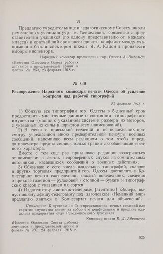 Главная Октябрьская революция и установление советской власти в республиках... Великая Октябрьская социалистическая революция на Украине Великая Октябрьская социалистическая революция на Украине. Февраль ... Документы Распоряжение Народного комиссара печати Одессы об усилении контроля...