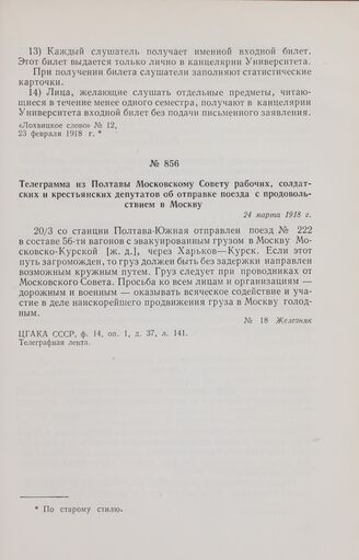 Главная Октябрьская революция и установление советской власти в республиках... Великая Октябрьская социалистическая революция на Украине Великая Октябрьская социалистическая революция на Украине. Февраль ... Документы Телеграмма из Полтавы Московскому Совету рабочих, солдатских и крес...