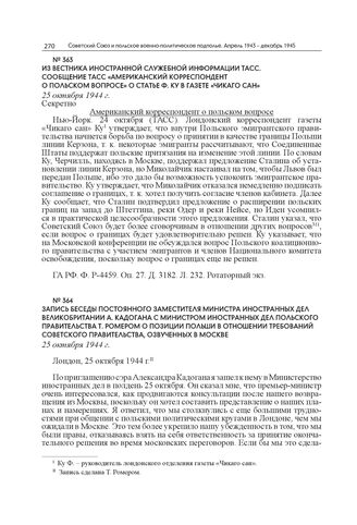 Documents on Polish-Soviet relations. 1939-1945. Vol. II: 1943-1945. London, 1967. Р. 436-437.