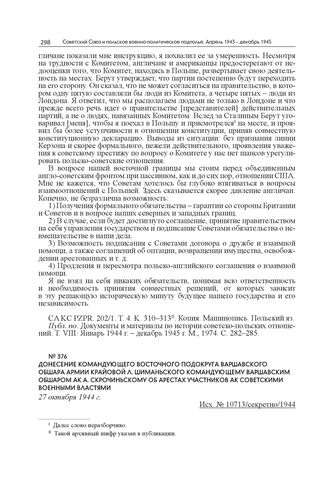Советский Союз и польское военно-политическое подполье. Апрель 1943 г.-декабрь 1945 г. В 3 т. Т. 2. Ч. 2. Июль-ноябрь 1944 г. Кн. 2. — М.: РОССПЭН, 2022.