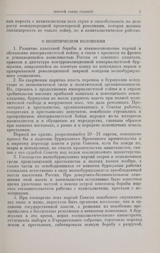 Резолюции и постановления VI съезда РСДРП(б), 26 июля-3 августа 1917 г. О политическом положении