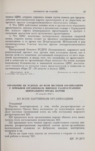 Главная Октябрьская революция и установление советской власти в республиках... Коммунистическая партия Советского Союза в борьбе за победу социали... Коммунистическая партия Советского Союза в борьбе за победу Великой... Документы Обращение ЦК РСДРП(б) ко всем местным организациям с призывом орган...