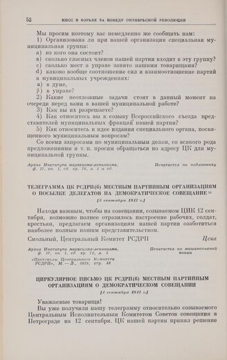 Главная Октябрьская революция и установление советской власти в республиках... Коммунистическая партия Советского Союза в борьбе за победу социали... Коммунистическая партия Советского Союза в борьбе за победу Великой... Документы Циркулярное письмо ЦК РСДРП(б) местным партийным организациям о дем...