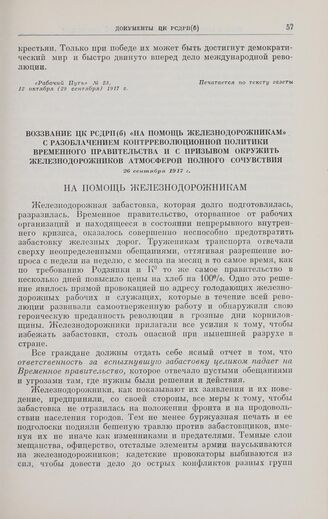 Главная Октябрьская революция и установление советской власти в республиках... Коммунистическая партия Советского Союза в борьбе за победу социали... Коммунистическая партия Советского Союза в борьбе за победу Великой... Документы Воззвание ЦК РСДРП(б) «На помощь железнодорожникам» с разоблачением...