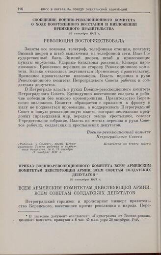 Главная Октябрьская революция и установление советской власти в республиках... Коммунистическая партия Советского Союза в борьбе за победу социали... Коммунистическая партия Советского Союза в борьбе за победу Великой... Документы Приказ Военно-революционного комитета всем армейским комитетам дейс...