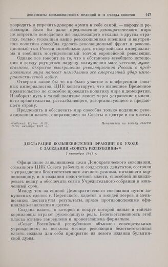 Главная Октябрьская революция и установление советской власти в республиках... Коммунистическая партия Советского Союза в борьбе за победу социали... Коммунистическая партия Советского Союза в борьбе за победу Великой... Документы Декларация большевистской фракции об уходе с заседаний «Совета Респ...
