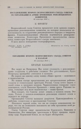 Постановление Второго Всероссийского съезда Советов об образовании в армии временных революционных комитетов. 26 октября 1917 г.