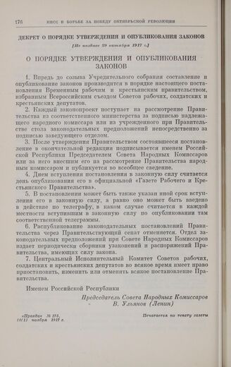 Главная Октябрьская революция и установление советской власти в республиках... Коммунистическая партия Советского Союза в борьбе за победу социали... Коммунистическая партия Советского Союза в борьбе за победу Великой... Документы Декрет о порядке утверждения и опубликования законов. [Не позднее 2...