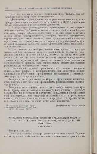 Воззвание Венденской военной организации РСДРП(б) с протестом против контрреволюционных действий офицеров. 5 июля 1917 г.
