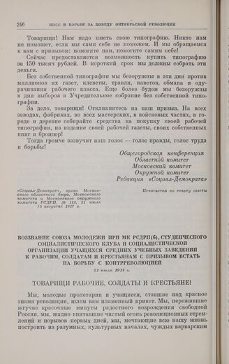 Главная Октябрьская революция и установление советской власти в республиках... Коммунистическая партия Советского Союза в борьбе за победу социали... Коммунистическая партия Советского Союза в борьбе за победу Великой... Документы Воззвание Союза молодежи при МК РСДРП(б), студенческого Социалистич...