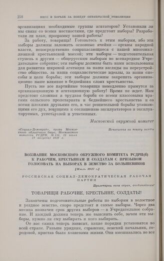 Главная Октябрьская революция и установление советской власти в республиках... Коммунистическая партия Советского Союза в борьбе за победу социали... Коммунистическая партия Советского Союза в борьбе за победу Великой... Документы Воззвание Московского окружного комитета РСДРП(б) к рабочим, кресть...