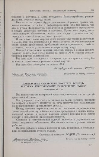 Главная Октябрьская революция и установление советской власти в республиках... Коммунистическая партия Советского Союза в борьбе за победу социали... Коммунистическая партия Советского Союза в борьбе за победу Великой... Документы Приветствие Самарского комитета РСДРП(б) третьему крестьянскому губ...