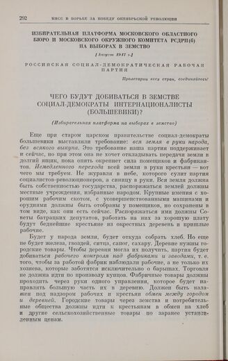 Главная Октябрьская революция и установление советской власти в республиках... Коммунистическая партия Советского Союза в борьбе за победу социали... Коммунистическая партия Советского Союза в борьбе за победу Великой... Документы Избирательная платформа Московского областного бюро и Московского о...