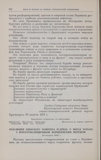 Резолюция Киевского комитета РСДРП(б) о мерах борьбы с контрреволюционным корниловским мятежом. 30 августа 1917 г.