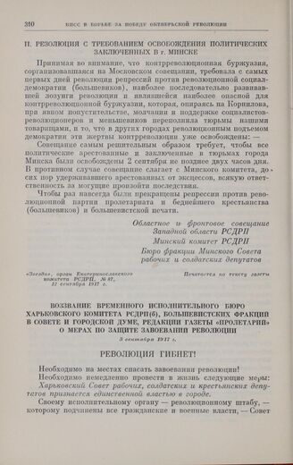Воззвание временного исполнительного бюро Харьковского комитета РСДРП(б), большевистских фракций в Совете и городской думе, редакции газеты «Пролетарий» о мерах по защите завоеваний революции. 3 сентября 1917 г.