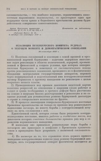 Резолюция Петербургского комитета РСДРП(б) о текущем моменте и демократическом совещании. 10 сентября 1917 г.