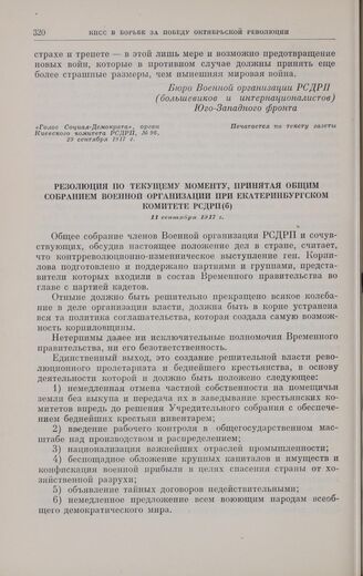 Главная Октябрьская революция и установление советской власти в республиках... Коммунистическая партия Советского Союза в борьбе за победу социали... Коммунистическая партия Советского Союза в борьбе за победу Великой... Документы Резолюция по текущему моменту, принятая общим собранием военной орг...