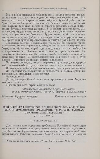 Главная Октябрьская революция и установление советской власти в республиках... Коммунистическая партия Советского Союза в борьбе за победу социали... Коммунистическая партия Советского Союза в борьбе за победу Великой... Документы Избирательная платформа Средне-Сибирского областного бюро и красноя...