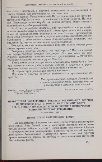 Главная Октябрьская революция и установление советской власти в республиках... Коммунистическая партия Советского Союза в борьбе за победу социали... Коммунистическая партия Советского Союза в борьбе за победу Великой... Документы Приветствия конференции военных организаций РСДРП(б) Кавказского кр...