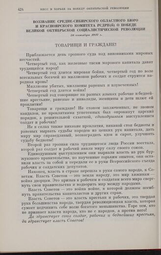 Главная Октябрьская революция и установление советской власти в республиках... Коммунистическая партия Советского Союза в борьбе за победу социали... Коммунистическая партия Советского Союза в борьбе за победу Великой... Документы Воззвание Средне-Сибирского областного бюро и Красноярского комитет...