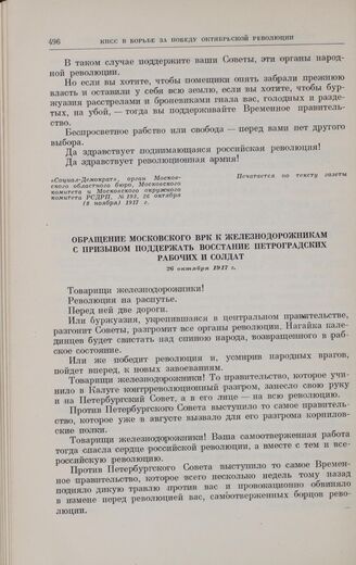 Главная Октябрьская революция и установление советской власти в республиках... Коммунистическая партия Советского Союза в борьбе за победу социали... Коммунистическая партия Советского Союза в борьбе за победу Великой... Документы Обращение Московского ВРК к железнодорожникам с призывом поддержать...