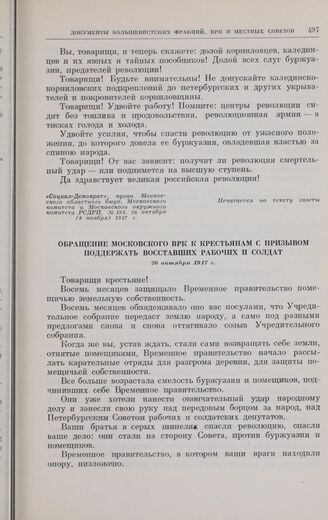 Главная Октябрьская революция и установление советской власти в республиках... Коммунистическая партия Советского Союза в борьбе за победу социали... Коммунистическая партия Советского Союза в борьбе за победу Великой... Документы Обращение Московского ВРК к крестьянам с призывом поддержать восста...