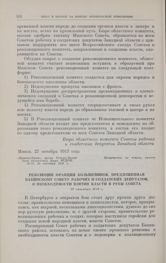 Главная Октябрьская революция и установление советской власти в республиках... Коммунистическая партия Советского Союза в борьбе за победу социали... Коммунистическая партия Советского Союза в борьбе за победу Великой... Документы Резолюция фракции большевиков, предложенная Бакинскому Совету рабоч...